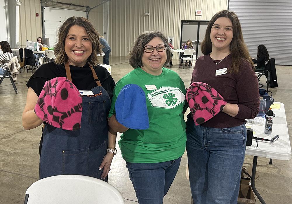 Held on a Saturday at the Lane Agri-Park grounds, the event united the talents of youth in the Rutherford County 4-H sewing program, as well as volunteers from the adult sewing program at the Extension Office to create warm, handmade polar fleece hats for children across Rutherford County.